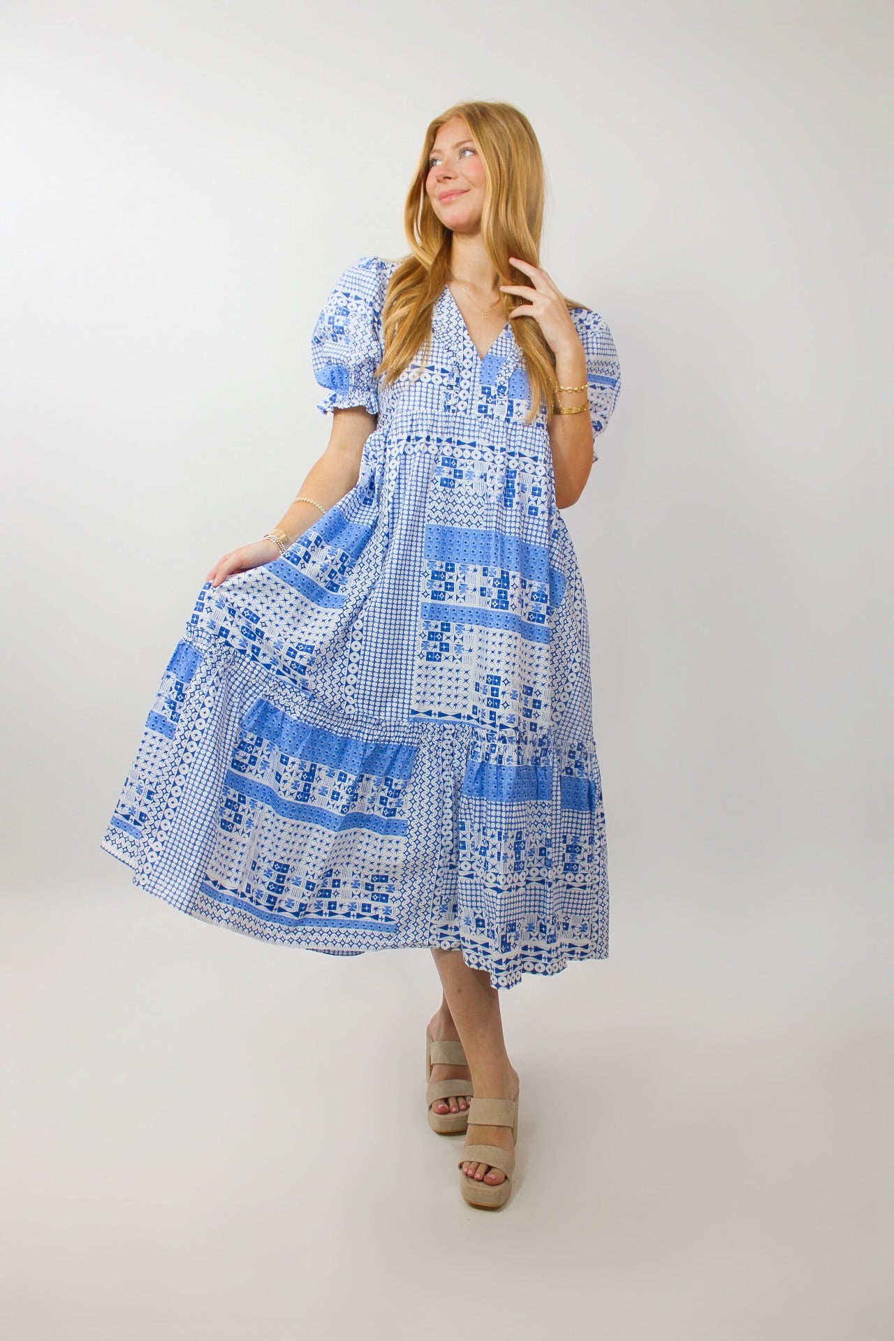 Blue Smocked Midi