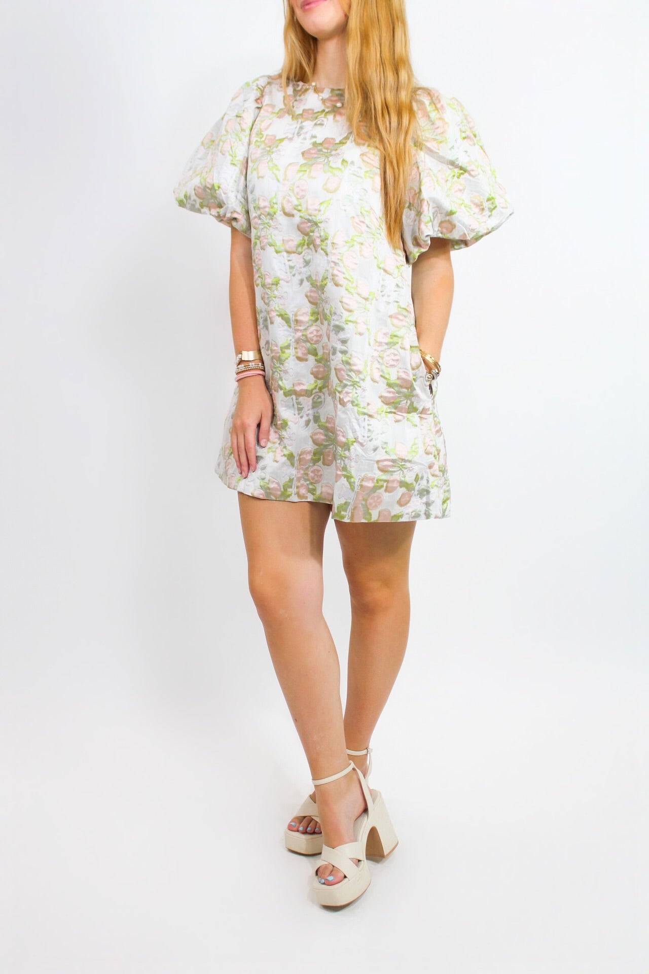 Courtney is 5'6 wearing a size small.- Puff Sleeve. - Zips Up The Back.- True to Size.