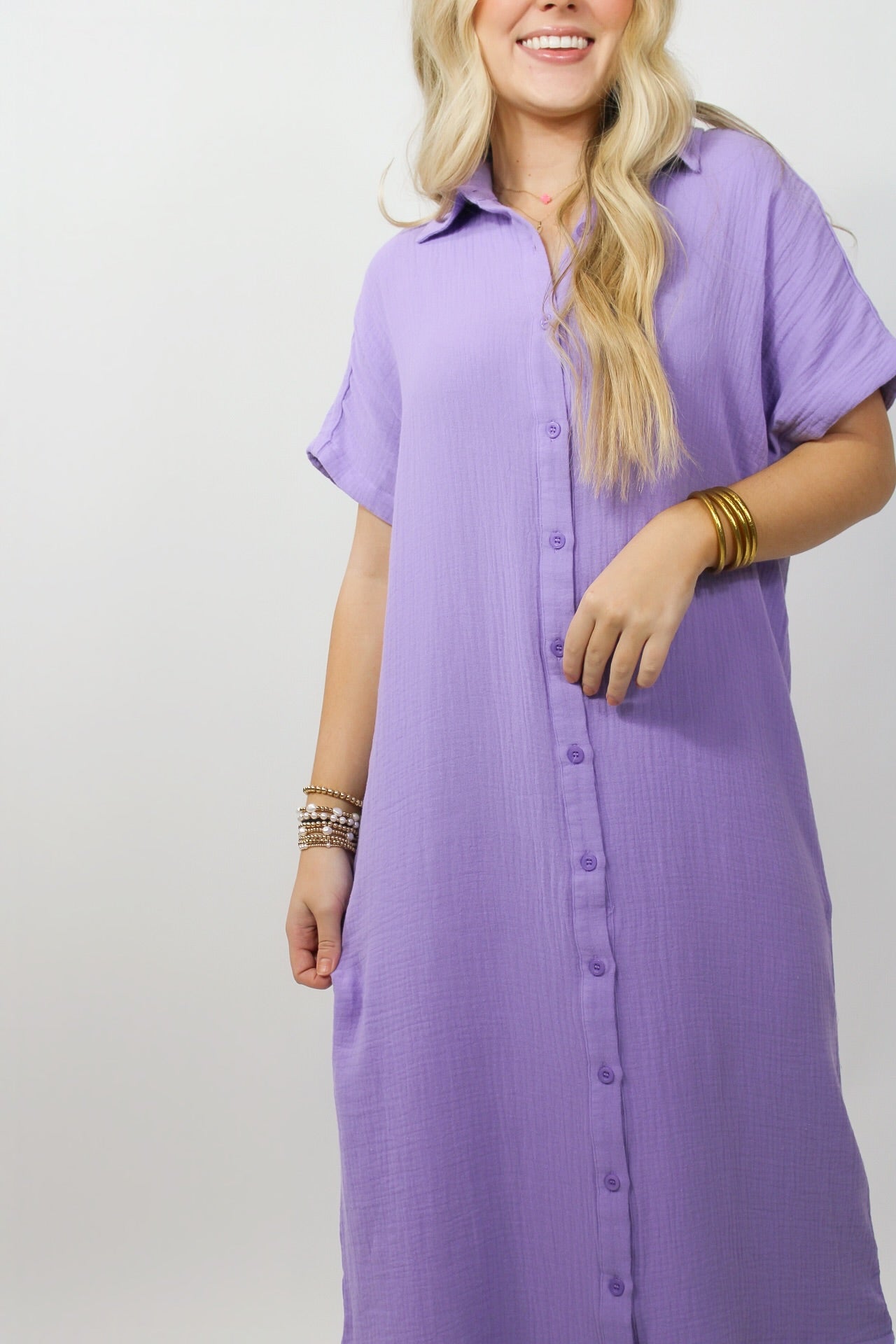Rachel is 5'3 wearing size small.- Buttons all the way down.- Light weight.- True to size.