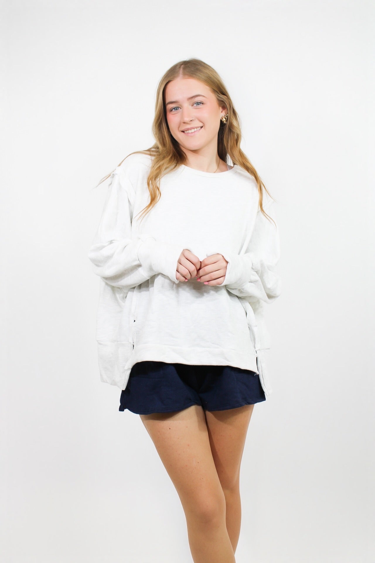Morgan is 5'4 wearing a size small.