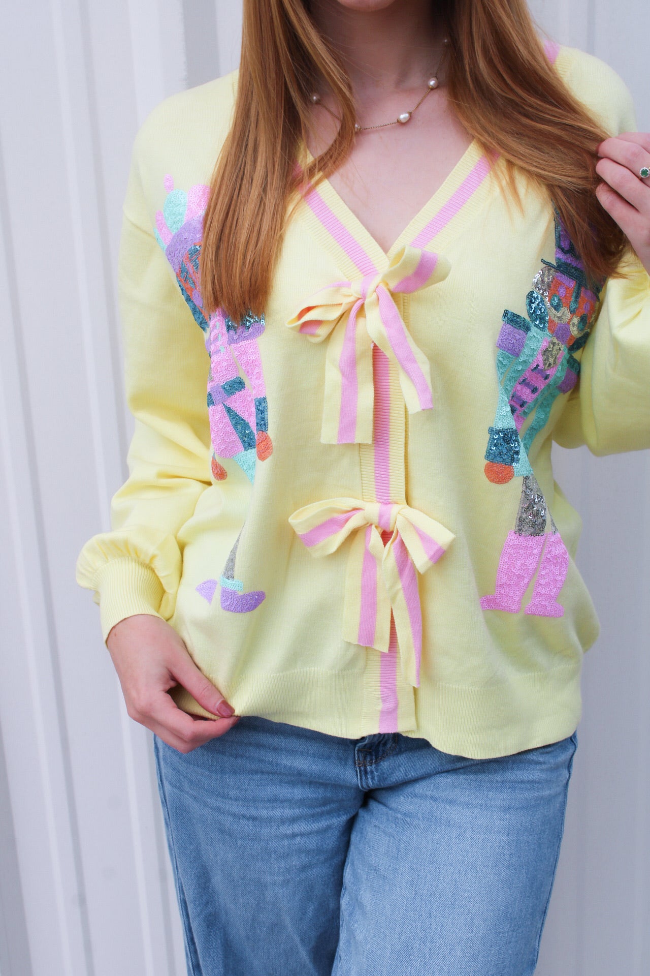 Courtney is 5'6 wearing a size small.- Sequin nutcrackers.- Bow details.- Slightly oversized.