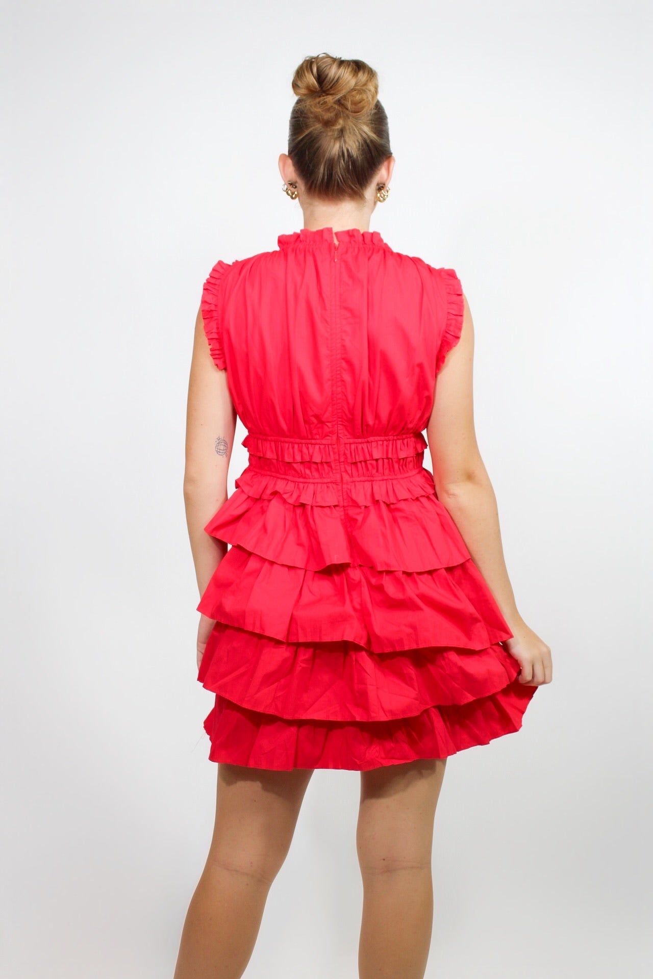 Morgan is 5'4 wearing a size x-small.- Ruffled Detailing.- Tiered Mini Dress.- True to Size.