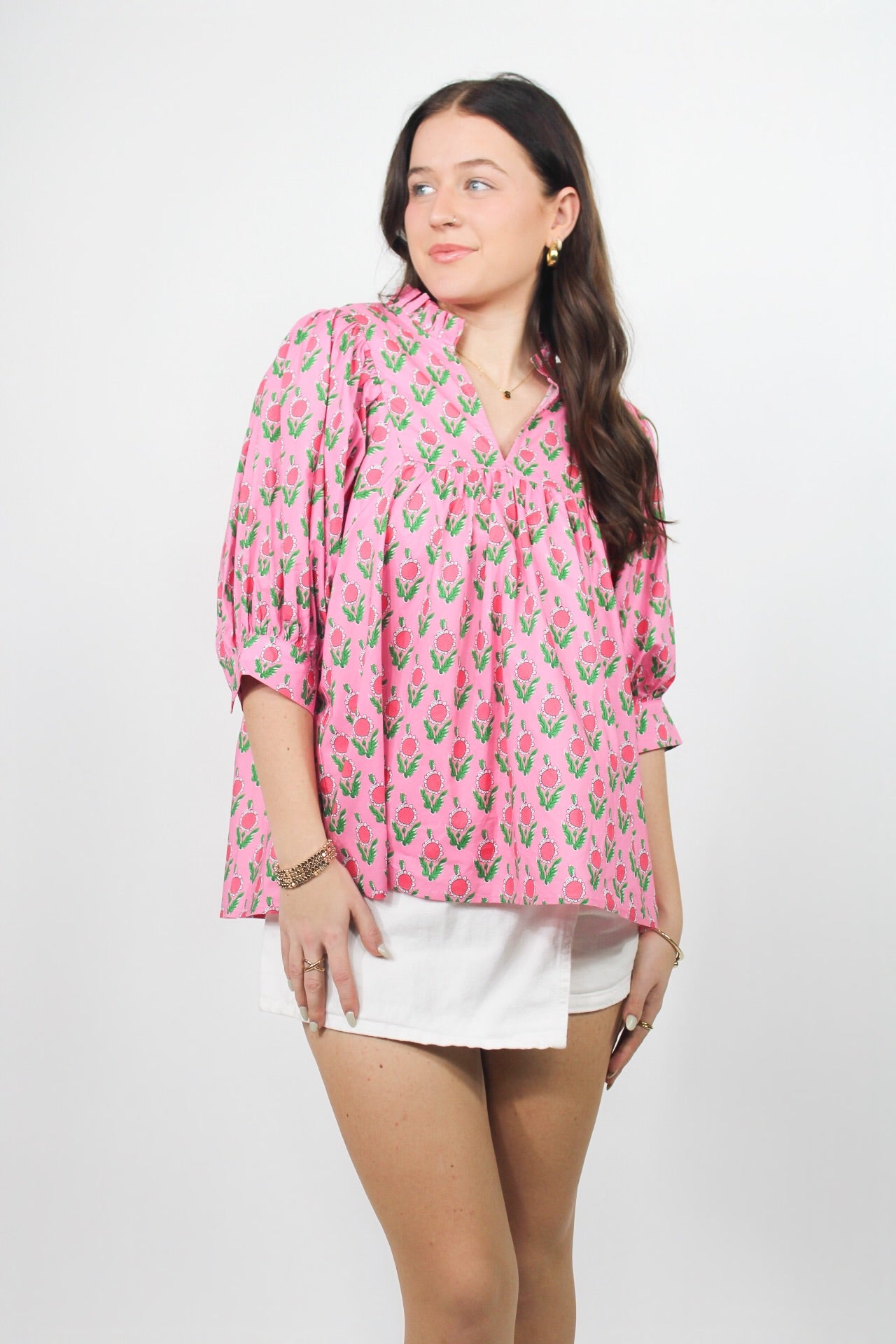 Lauren is 5'8 wearing a size small. Morgan is 5'4 wearing a size small.